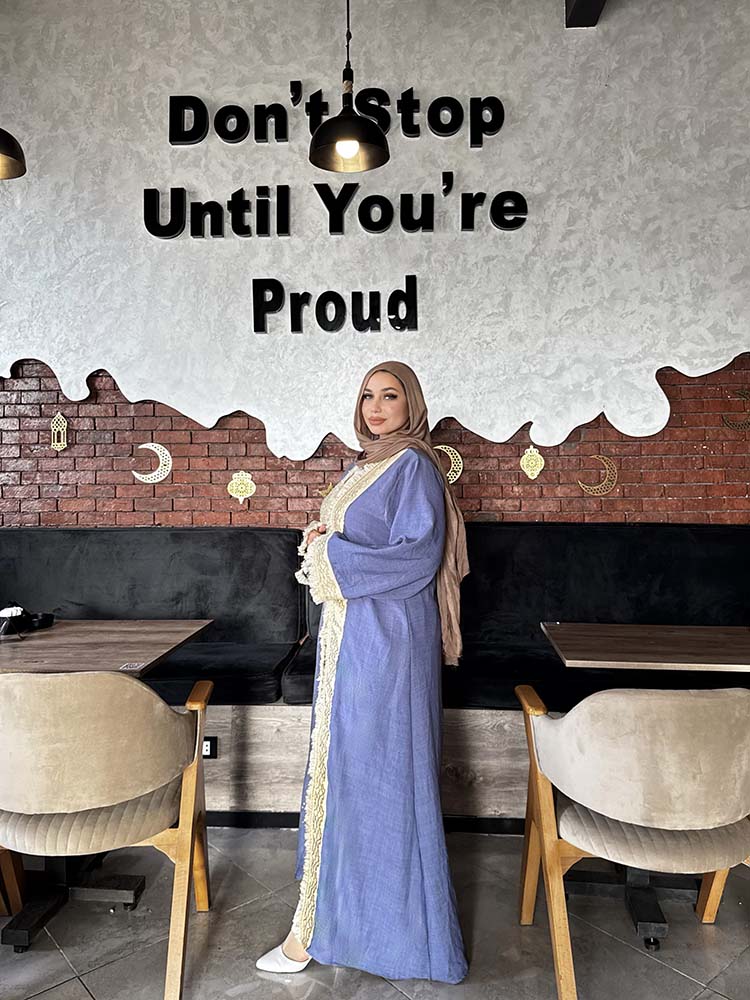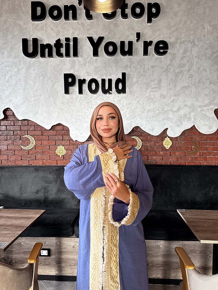 قفطان بيزيك أنيق بتصميم طويل وأكمام كاملة من تيما، يجمع بين البساطة والرقي ليكون خيار مثالي للإطلالات اليومية أو المناسبات البسيطة. يتميز بخامة عالية الجودة تمنحك راحة أثناء الارتداء مع قصّة انسيابية تبرز جمال القوام بأسلوب محتشم وعملي. تصميمه الكلاسيكي يتيح لك تنسيقه بسهولة مع إكسسواراتك المفضلة لإطلالة عصرية ومتجددة.