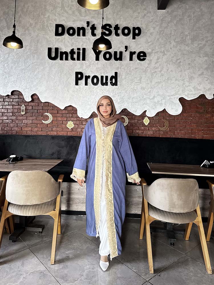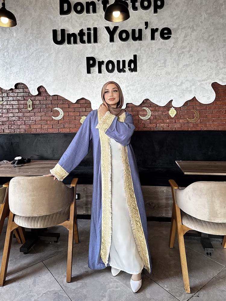 قفطان لافندر فخم بتصميم أنيق وتفاصيل راقية