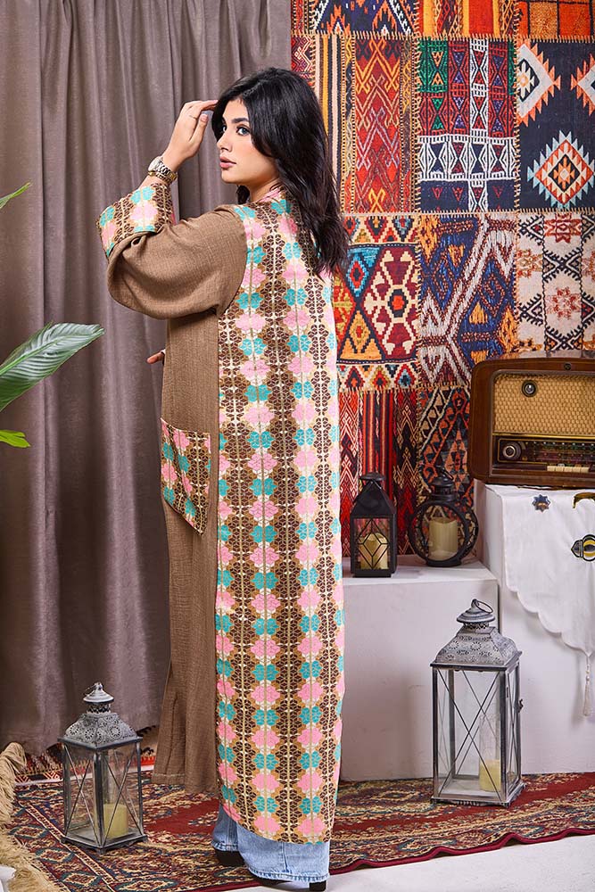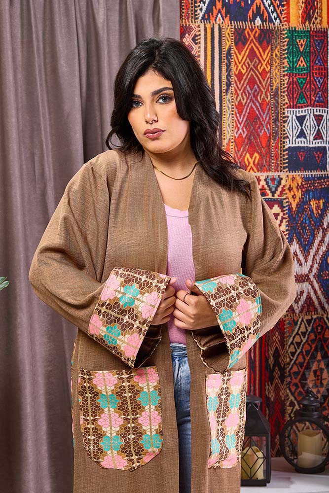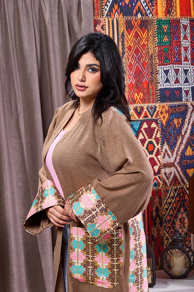 Elegant coffee-colored kaftan with refined design and luxurious details