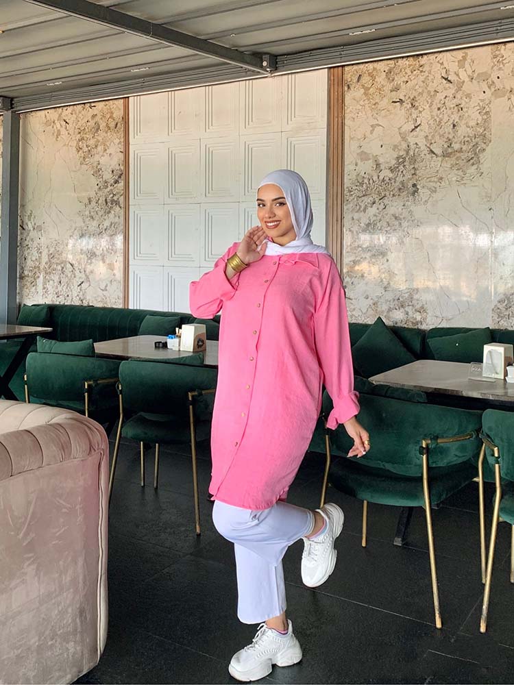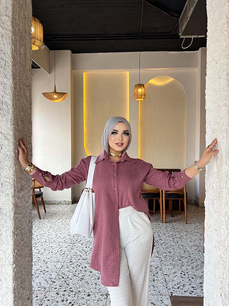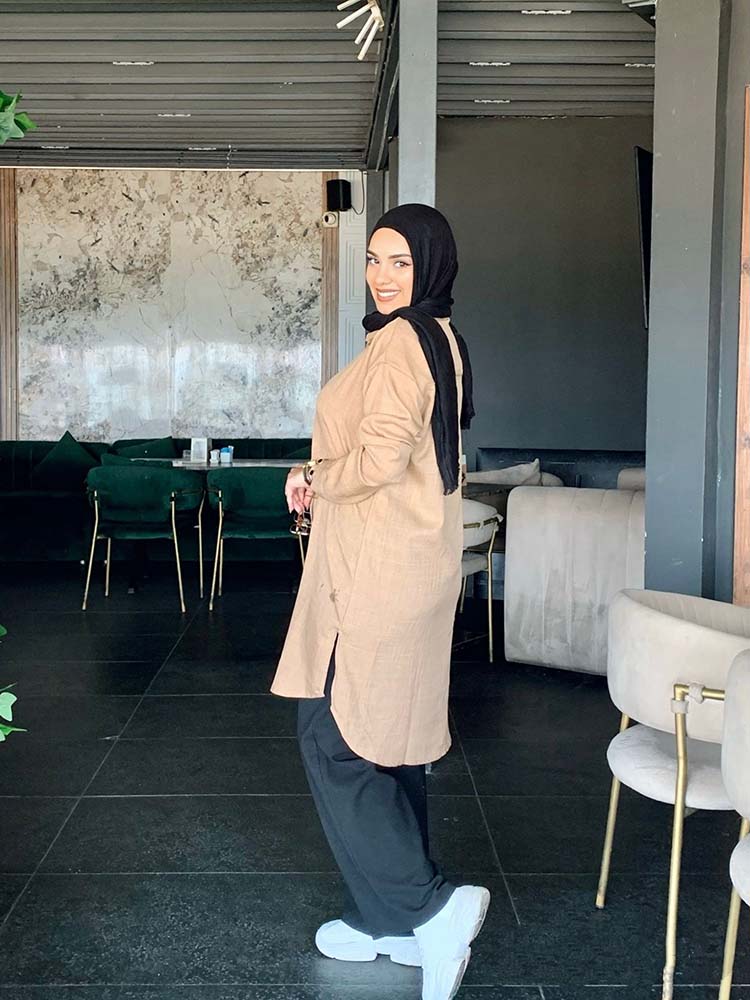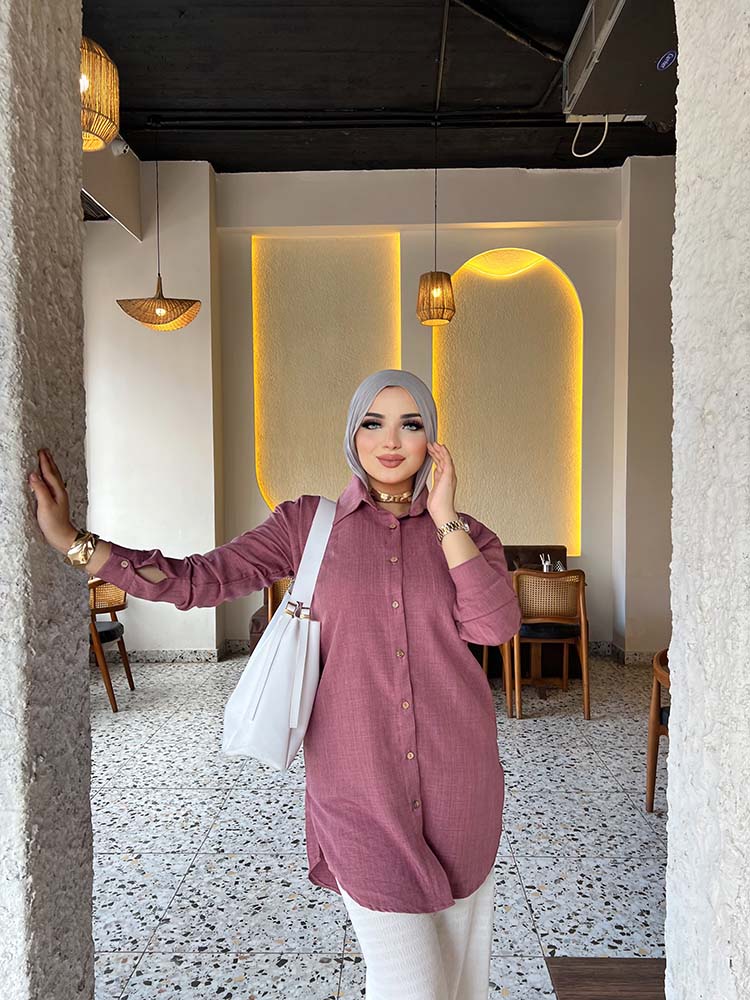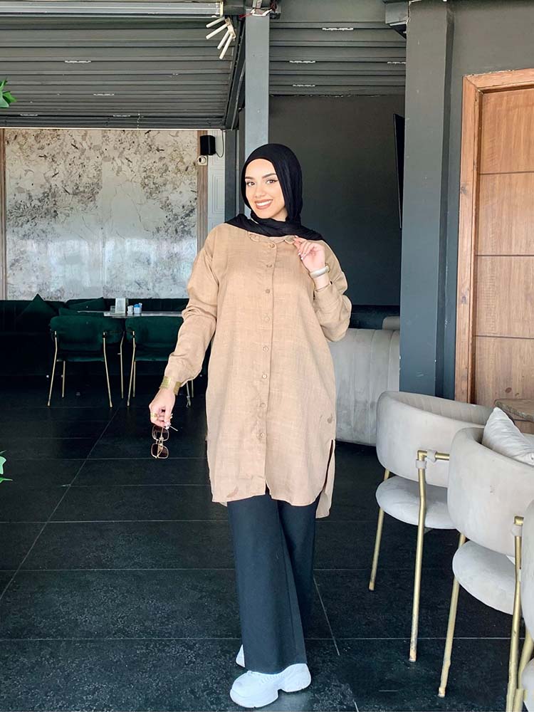 Basic long chemise with full sleeves from TEMA, designed with elegance and simplicity to suit both everyday wear and casual occasions. Made from premium quality fabric for comfort and ease, featuring a sleek cut that highlights the body in a modest and practical style. Its timeless design makes it easy to pair with your favorite accessories for a chic and versatile look.