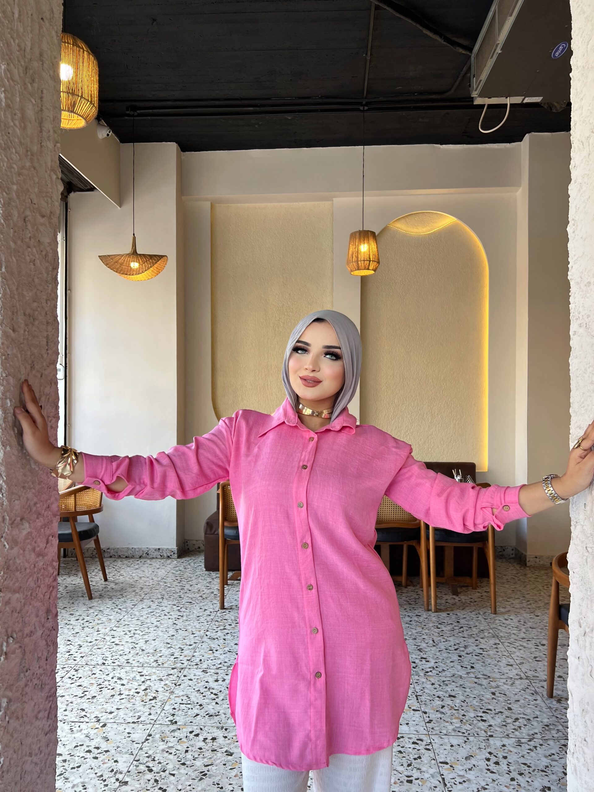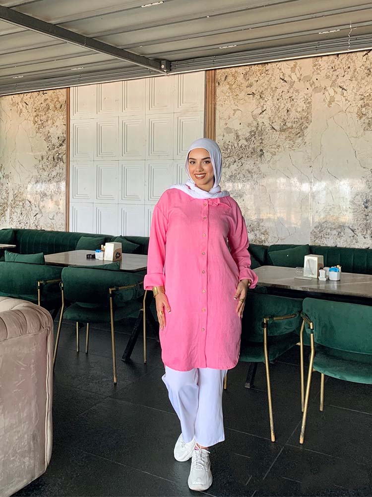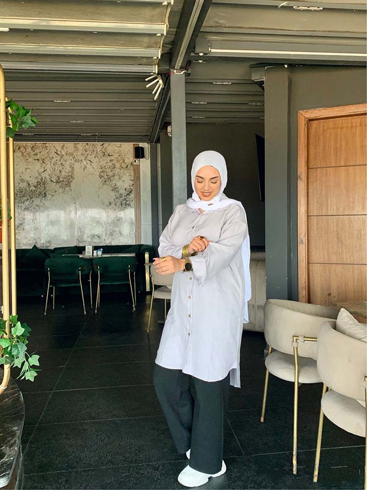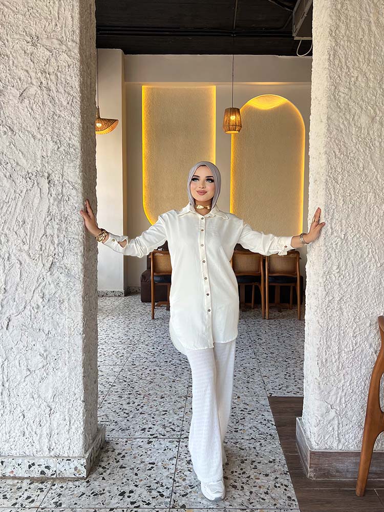 Basic long chemise with full sleeves from TEMA, designed with elegance and simplicity to suit both everyday wear and casual occasions. Made from premium quality fabric for comfort and ease, featuring a sleek cut that highlights the body in a modest and practical style. Its timeless design makes it easy to pair with your favorite accessories for a chic and versatile look.