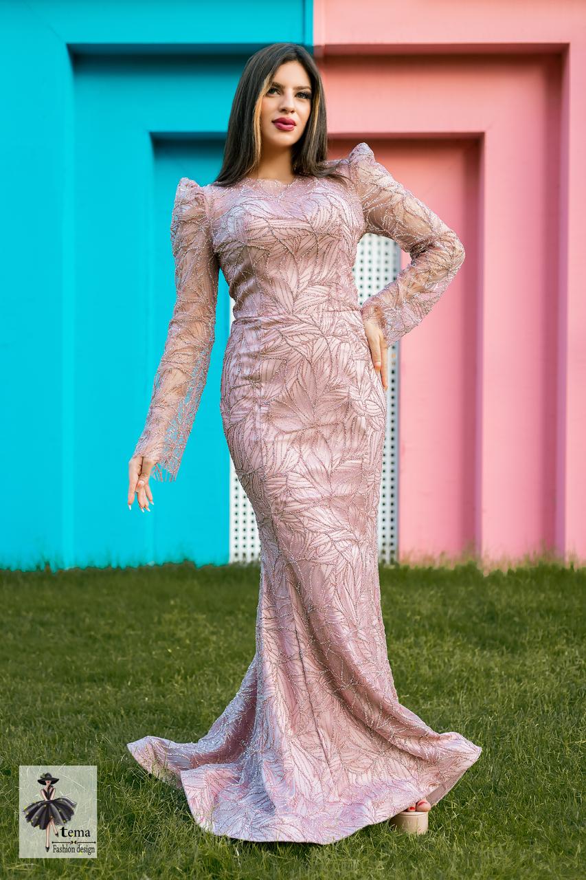 An elegant cashmere-colored evening gown, perfect for special occasions and evening events.
